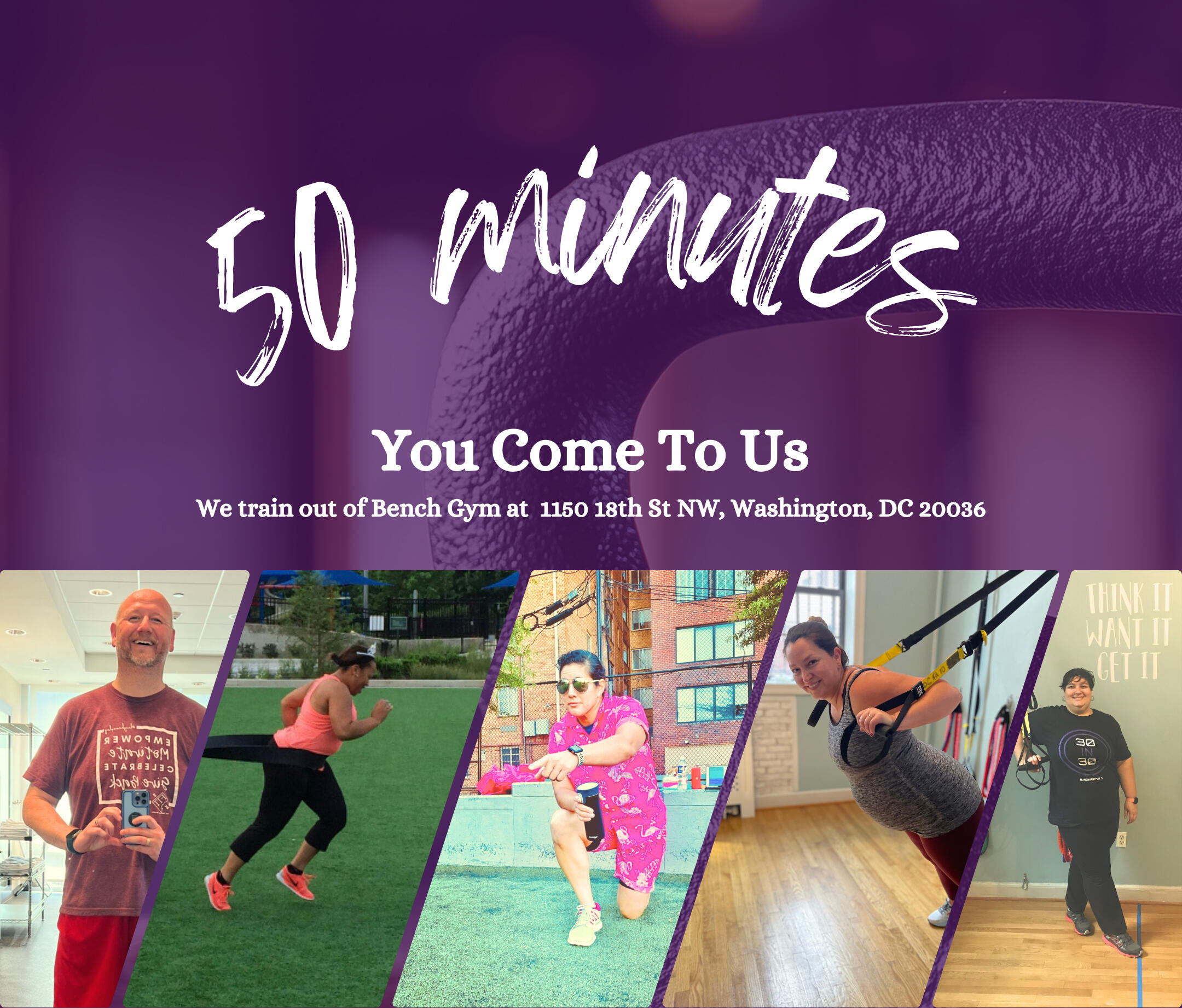 Meet us at BENCH GYM in DC or we will TRAVEL TO YOU